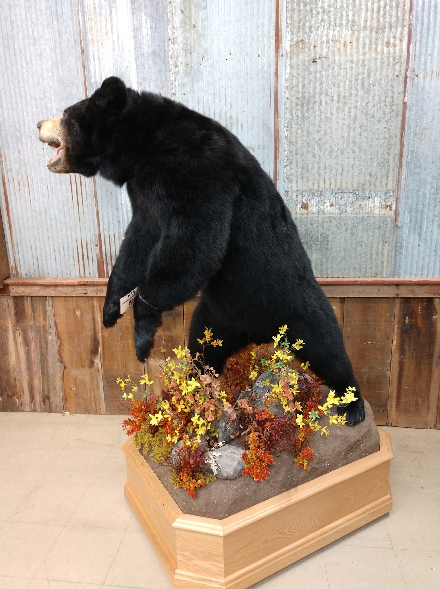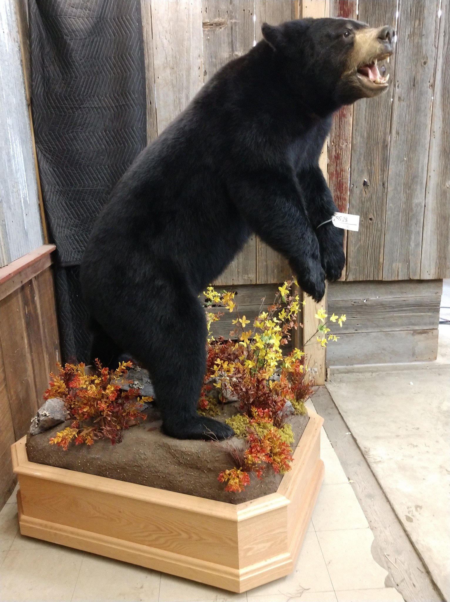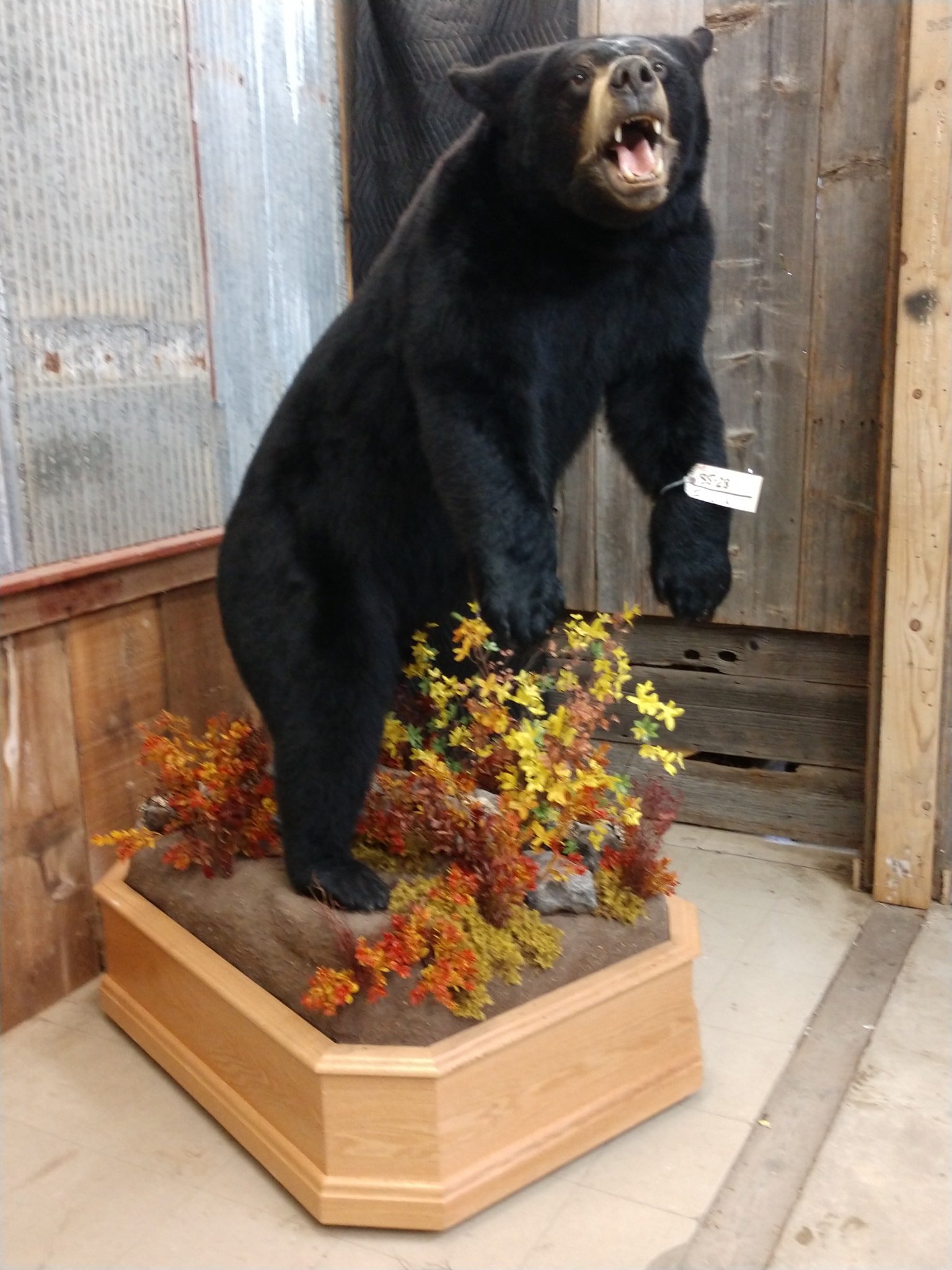 Step into the realm of wilderness allure with our extraordinary, life-size Black Bear taxidermy mount. Also, this captivating piece stands proudly on a custom-designed barn wood base adorned with foliage and rock accents, showcasing the mastery of taxidermy craftsmanship and earning our esteemed Premier™ overall rating.