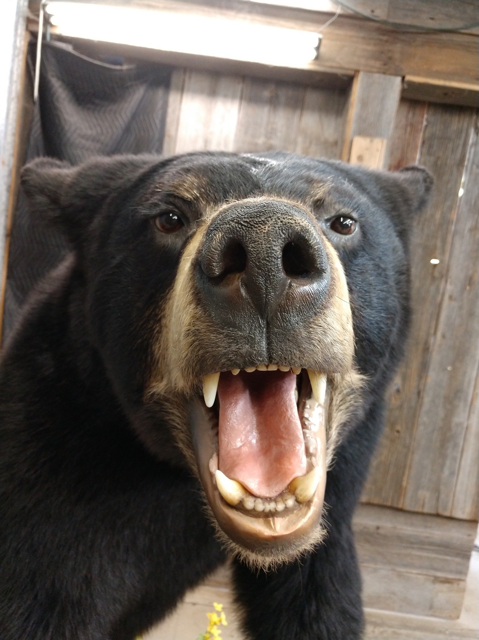• Majestic Stature: This larger-than-life Black Bear boasts an impressive size, standing on a barn wood base meticulously designed for authenticity. Also, the outstanding hide, remarkably soft, thick black hair, and distinctive white marks on its chest make it a truly unique specimen.